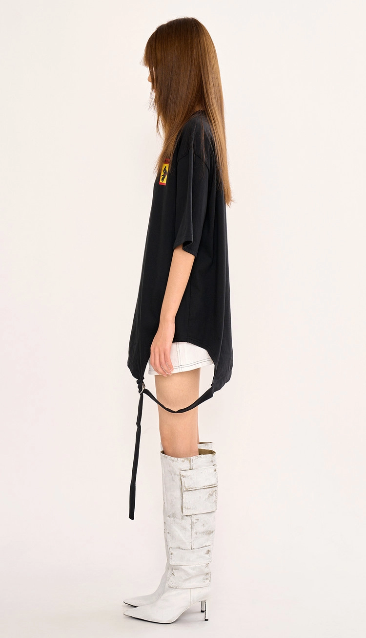 Asymmetric Belt T Shirt - BlackSALE