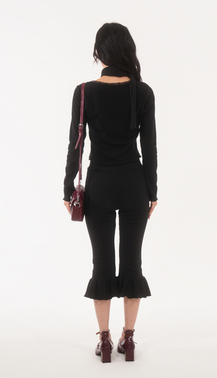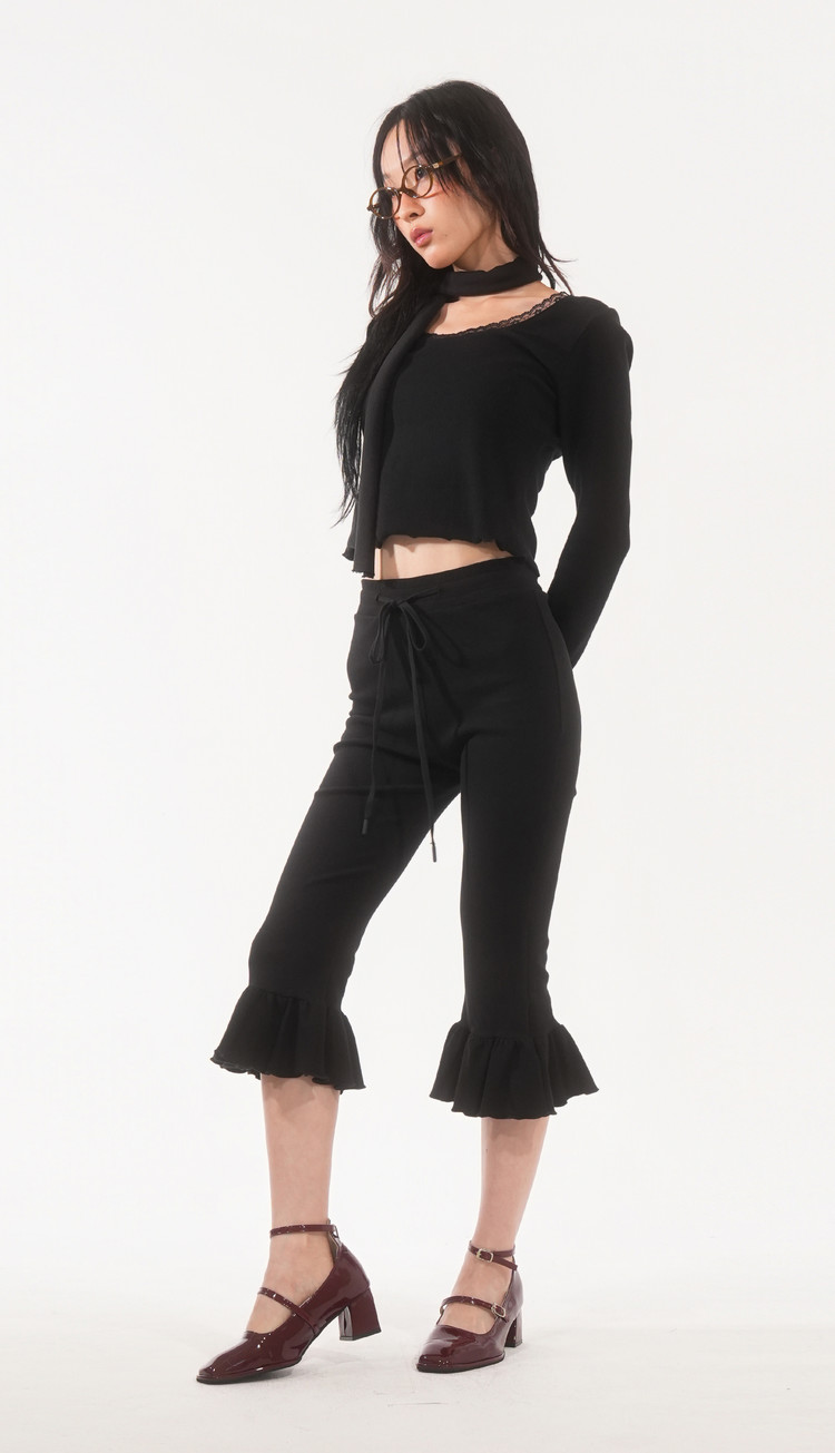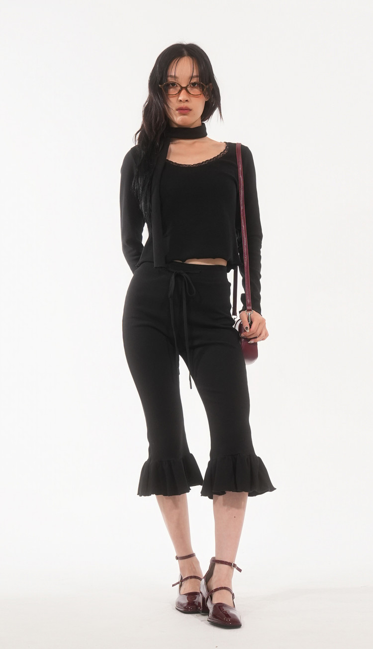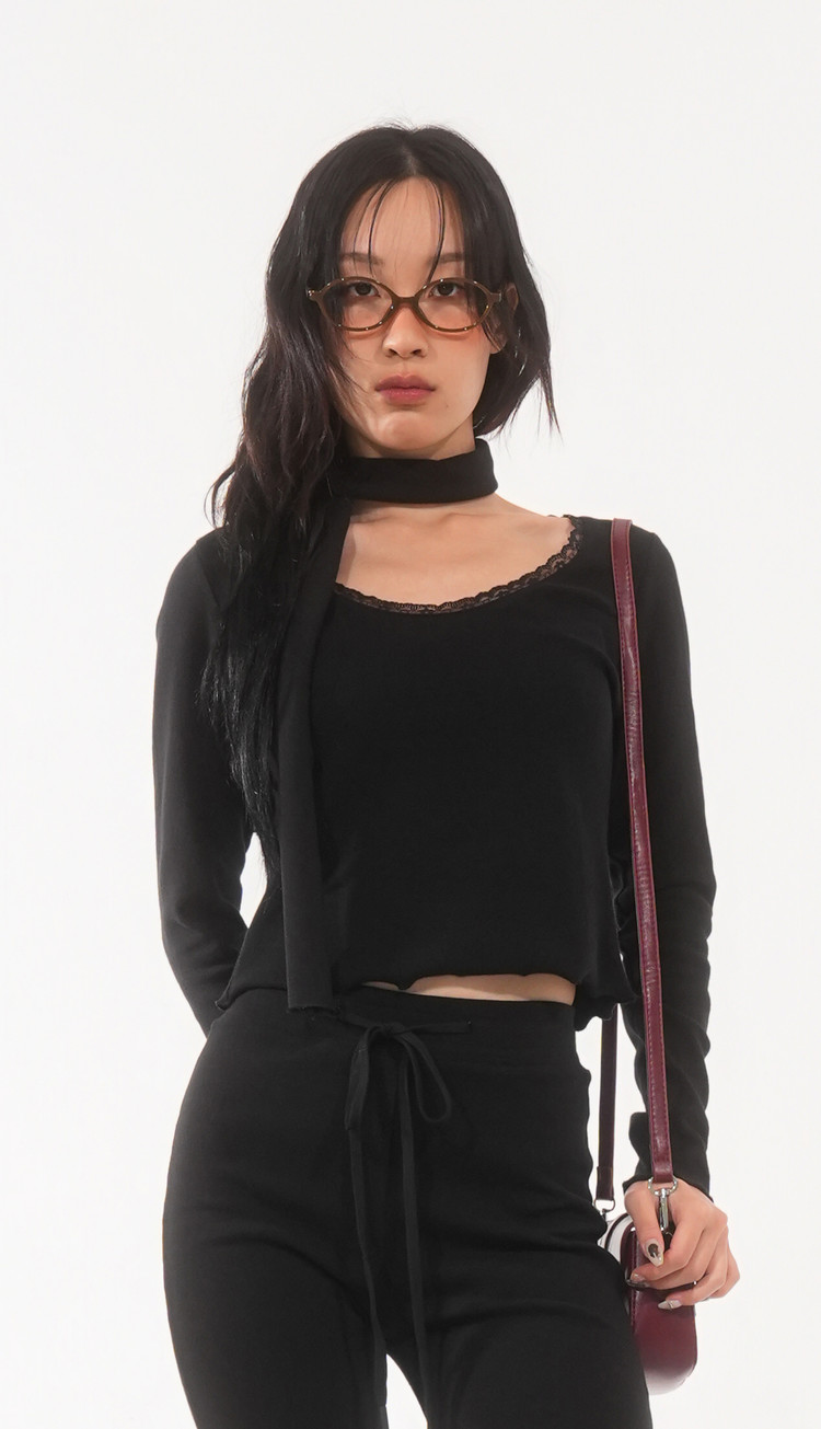 * 깊은 U넥 레이스 크롭 탑