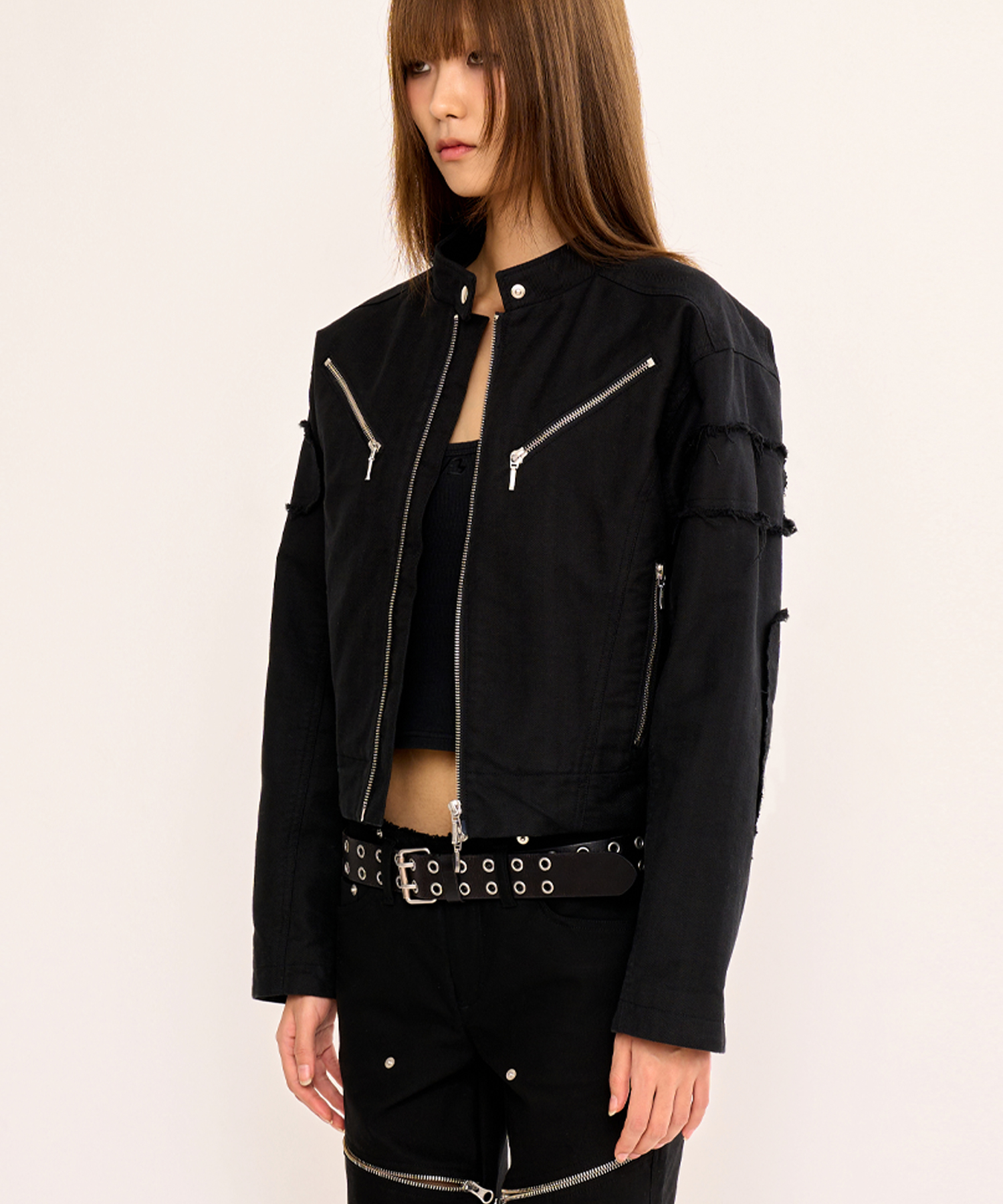 * 가슴 양쪽 V라인 / 사이드 포켓 지퍼 디테일
