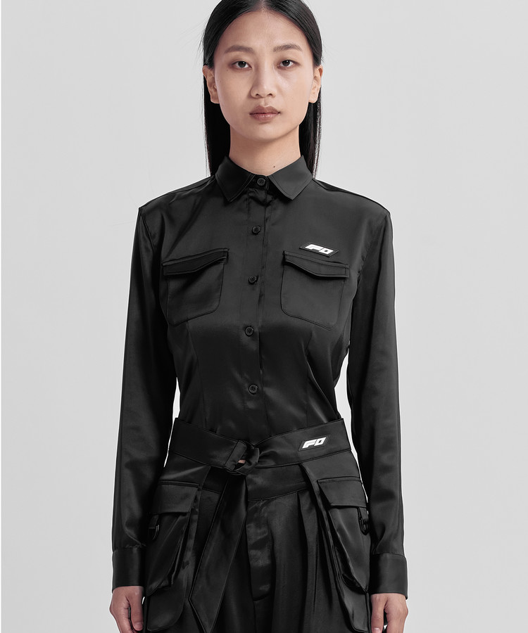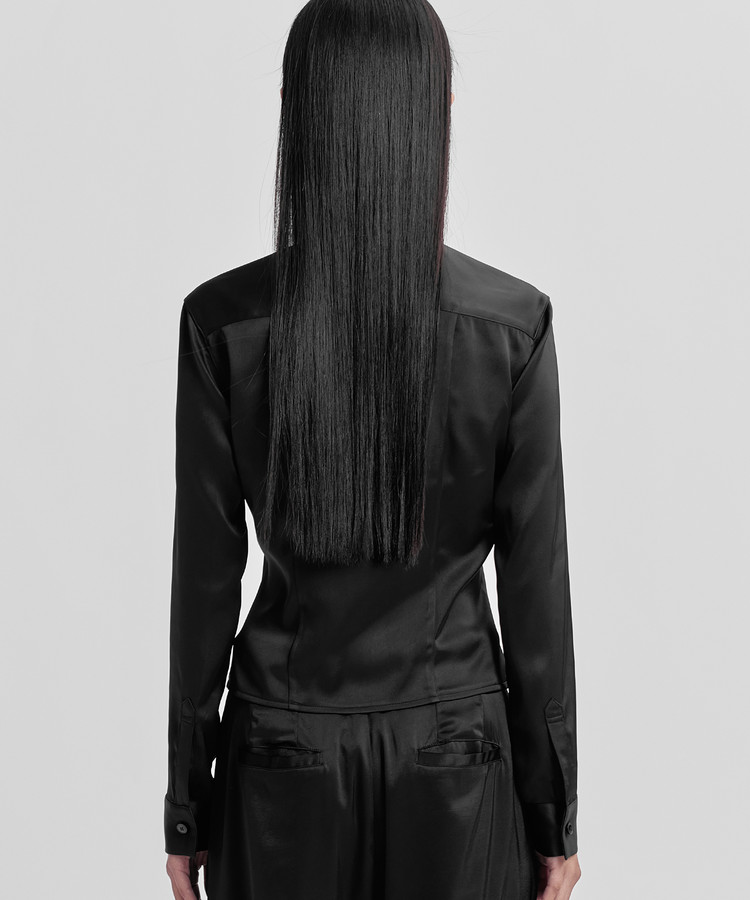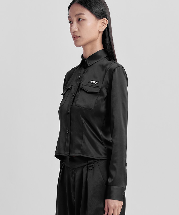 찰랑거리는 사틴원단으로 부드러움과 고급스러운 분위기의 크롭 셔츠입니다.