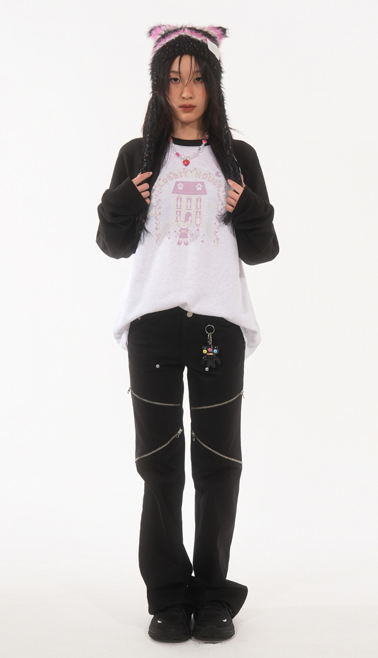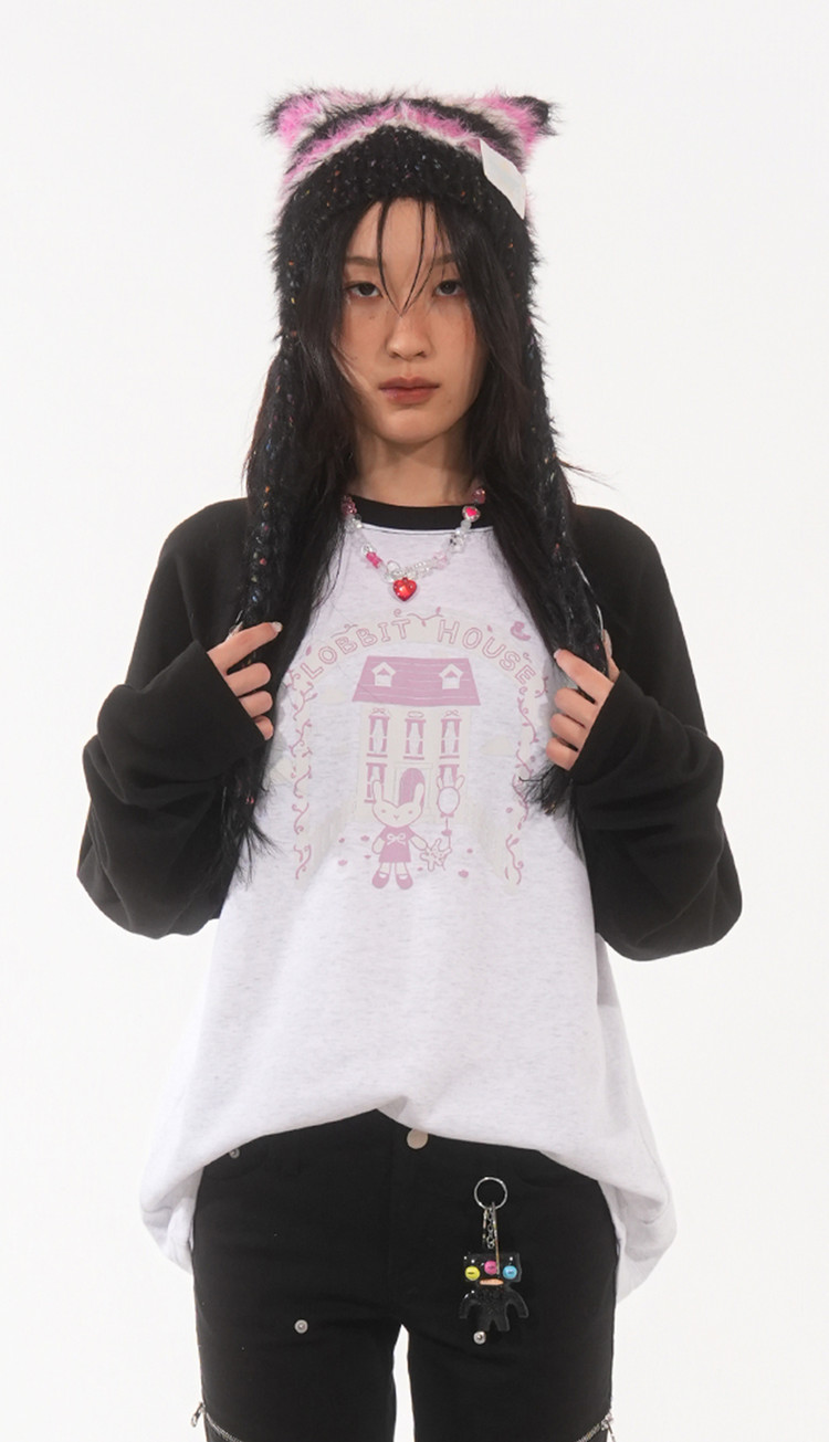 LOBBIT HOUSE RAGLAN T (White/Black)SALE