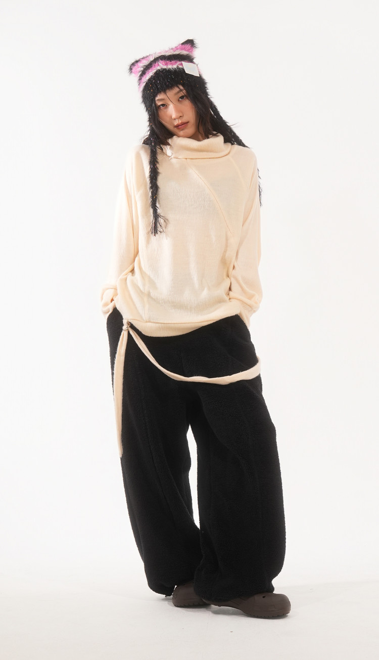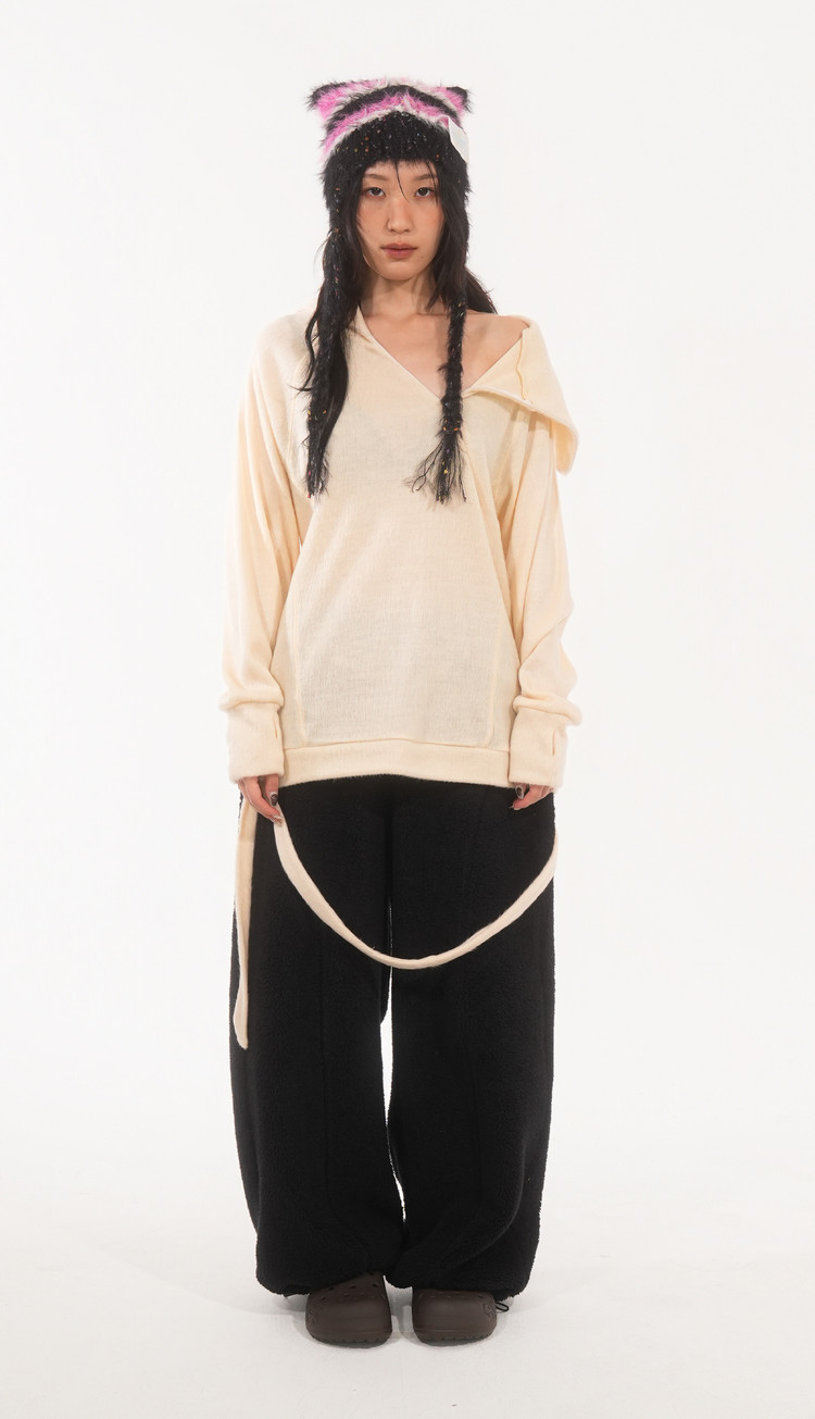 * 탈착 가능한 밑단 끈 디테일로 스카프로 연출 가능